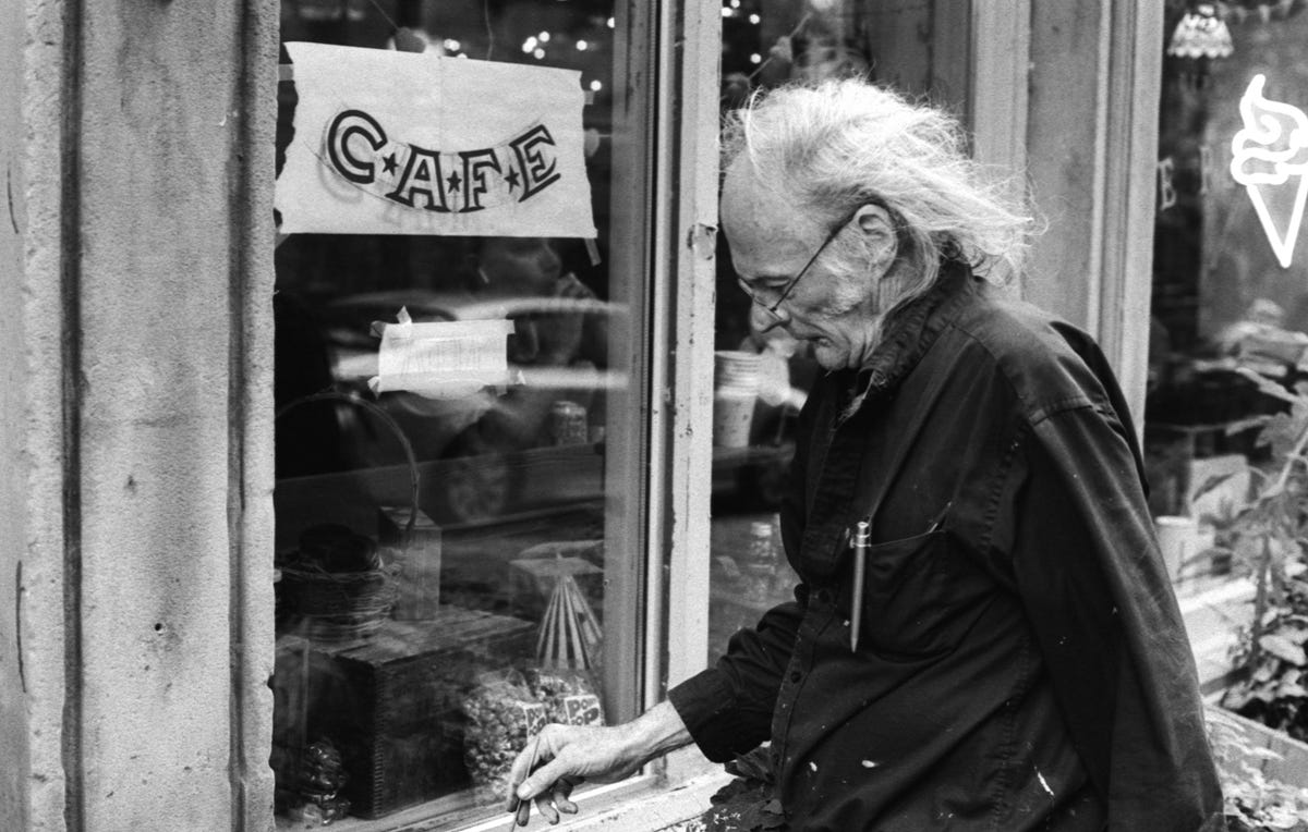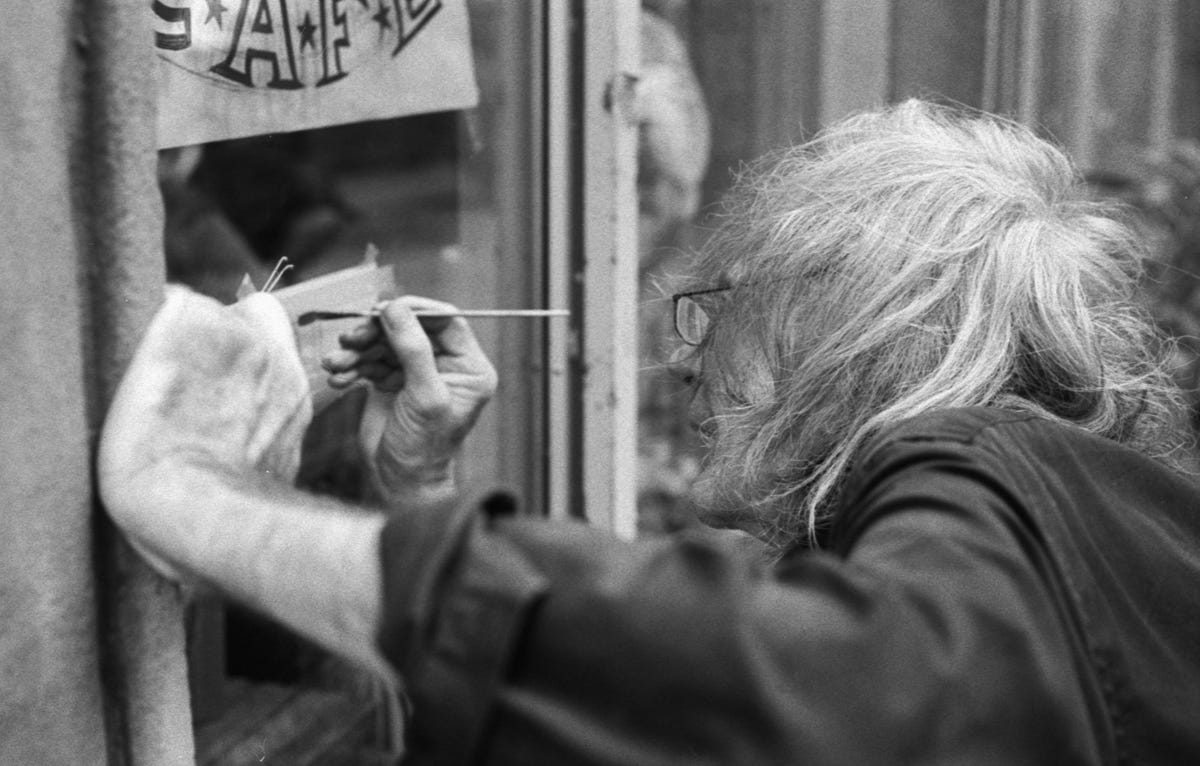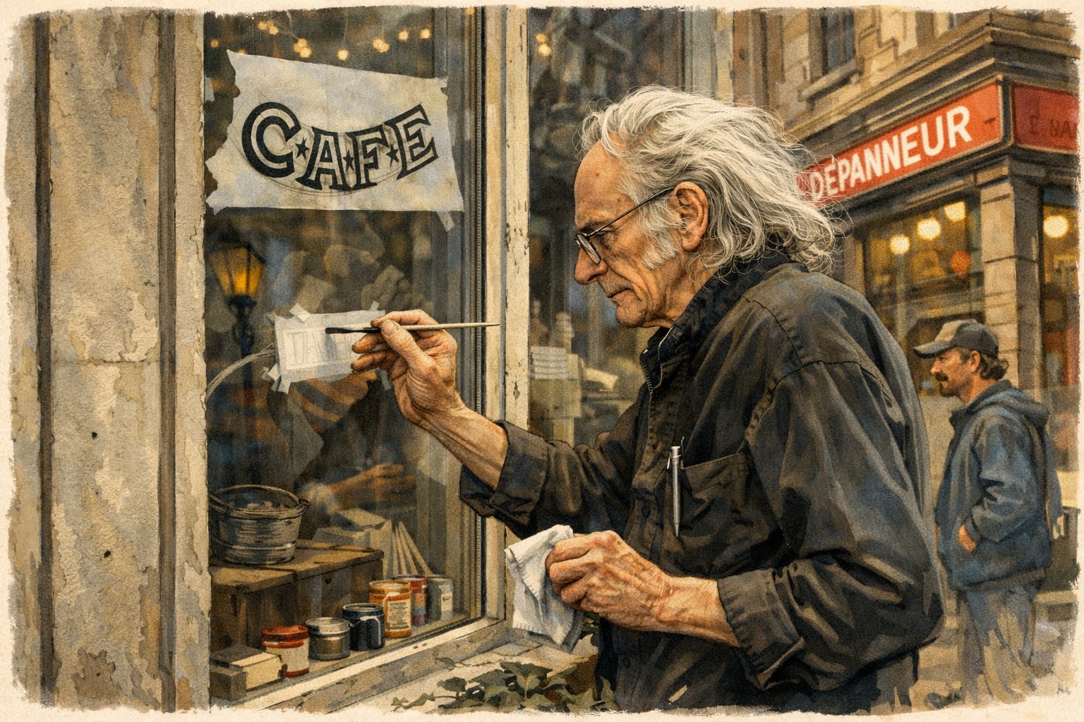 Ces rencontres imprévues sont souvent les plus fascinantes. Par une douce journée de septembre 2022, j’ai croisé par pur hasard Claude Dolbec, peintre de vitrines travaillant à main levée. Malgré ma timidité naturelle, je me suis approché de lui alors qu’il réalisait un lettrage sur la vitrine d’un dépanneur du Vieux-Montréal.